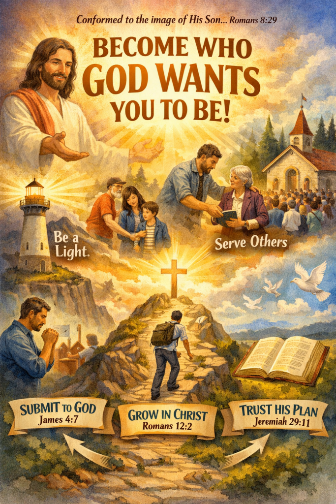 Simply put, God wants us to be like Christ. His ultimate goal for believers is to reflect Christ’s character, as stated in Romans 8:29. “For whom he did foreknow, he also did predestinate to be conformed to the image of his Son…” Being like Christ means living with love, humility, obedience, and truth, showing His example in our everyday lives.
